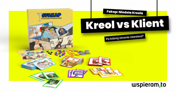 Fakap: Niedola Kreola to niecodzienna, dwuosobowa gra karciana, wypełniona twardym humorem i branżowym żargonem, w której wcielasz się w Kreola lub Klienta i konkurujesz o… o wyciągnięcie ile się da z drugiej strony. Zwycięzca może być tylko jeden!
