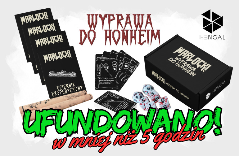 * Warlock: Wyprawa do Honheim - Box Edition (Pudełko, karty zbrojowni i magii, dedykowane kości, (broszura) DZIENNIK EKSPEDYCYJNY, (broszura) SPACZONE ZIEMIE, (broszura) WYPRAWA DO HONHEIM, (broszura) BESTIARIUSZ HONHEIM, Mapa Honheim od Kartografa ma dużym papierze.