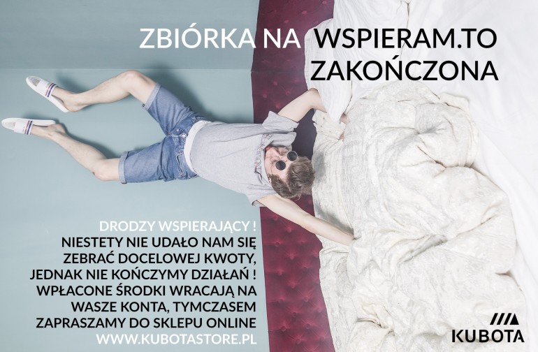 Jeżeli zbiórka wypali i będziemy mogli utrzymać produkcję w Polsce, to uroczyście, w białych sportowych skarpetach, obiecujemy, że będzie się działo. Planujemy kolaboracje z polskimi markami, szalone lookbooki, koncerty i wydarzenia z Kubotowym stemplem odpału. Mamy nadzieję, że w social media uda nam się niejako zbudować portret Polaków – jednej wielkiej rodziny Kubota. Janusz Sawszczak, Grażynka, Sebix, chcemy ożywić te postacie w naszych sesjach i filmach. Im więcej narodowych balonów przebijemy, drobnych kompleksików wyśmiejemy, tym lepiej. Oczywiście w Kubotach i białych skarpetach na nogach.