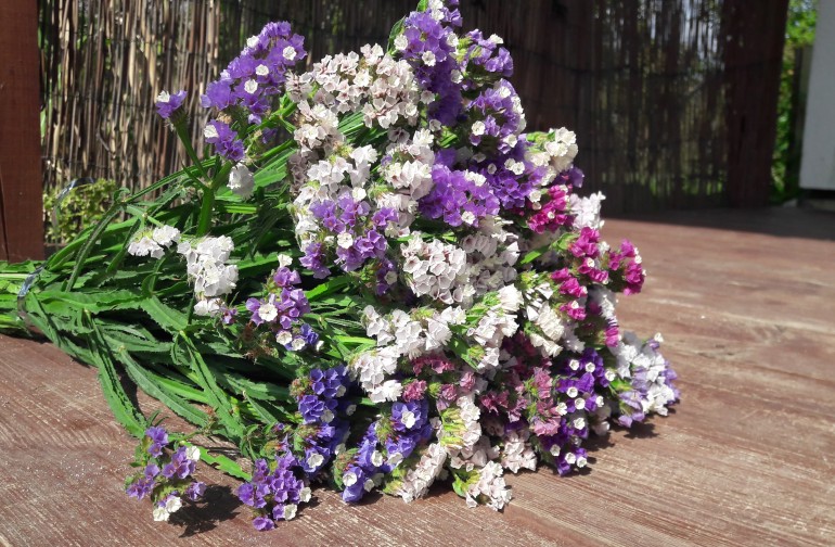 | Jesień - Astry - Cynie - Gipsówka - Trawy ozdobne - Zatrwian | Zima: suche bukiety - Zatrwian - Lawenda - Trawy ozdobne - Przegorzan pospolity - Suchołuski |