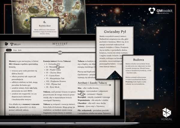 Mata do Mystery ze skrótami zasad, ruchami i pomocami dla MG oraz Graczy. W Mystery zastępuje ona ekran.