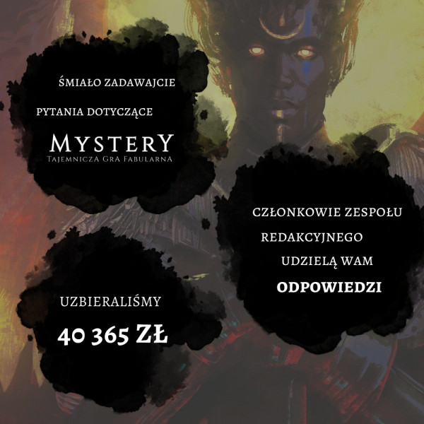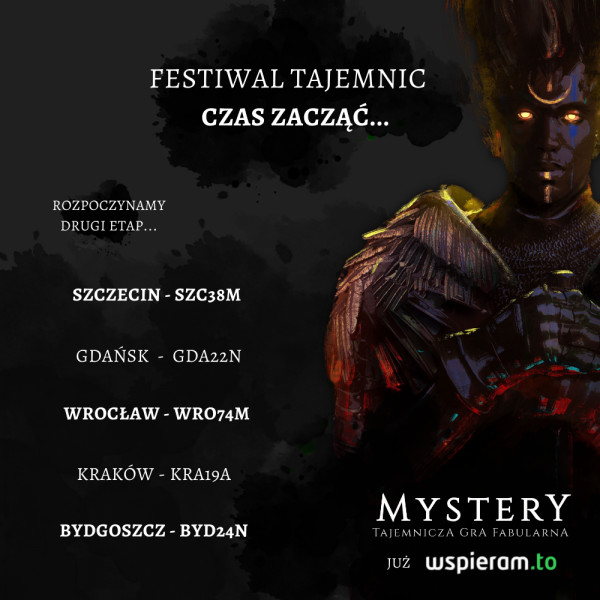 2 lata temuSzybka informacja: w czwartek wieczorem przyszedł nakład Mystery: Mroczny wiek na magazyn! Przygotowujemy się do wysyłek, czekamy za dostawą broszur, choć niewykluczone, że w międzyczasie podstawowy rodzaj paczek już będzie w przygotowaniu. W poniedziałek z rana dostaniemy więcej informacji, dlatego czekamy jeszcze chwilkę z pełnoprawną aktualizacją, by nie robić spamu na Waszych skrzynkach co dwa dni :) Dzięki, że z nami jesteście! Zachęcamy również do śledzenia Facebooka (https://www.facebook.com/wydawnictwohengal), Instagrama (hengal_games), a także wejścia na czat Mystery na discrodzie (https://discord.gg/4U7qqXJ9). Udanego weekendu!