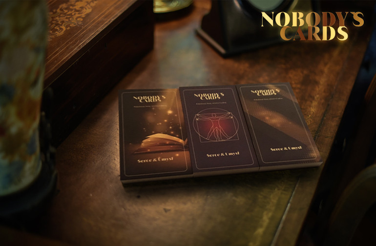 Nobody's Cards to talia 30 ekskluzywnych kart na złotym papierze Sirio Pearl Aurum, których treści dotykają wielu aspektów życia. Tego rzeczywistego - tu i teraz, a także duchowego, którego najczęściej nie dostrzegamy, gdyż nasza percepcja nie jest jeszcze na tyle rozwinięta. Nasze karty nie powstały w pół roku, jednakże są wynikiem wieloletniej pracy, praktykowania narzędzi rozwoju oraz świadomego doświadczania życia przez ludzi kroczących ścieżką uważności.