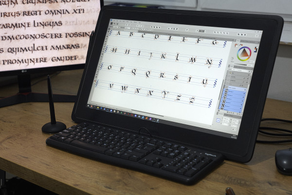 Nazywam się Kamil Bachmiński, jestem kaligrafem i nauczycielem tego rzemiosła. W 2020 roku wydałem "Mały przybornik skryby", podręcznik i przekrojowy przewodnik po średniowiecznej kaligrafii. Projekt spotkał się z entuzjazmem, który, przyznam, zupełnie mnie zaskoczył. Na wspieram.to udało nam się zebrać 262% wymaganej kwoty i zrealizować wszystkie cele dodatkowe — a gotowa książka spotkała się z bardzo ciepłym przyjęciem zarówno amatorów jak i zawodowych kaligrafów.